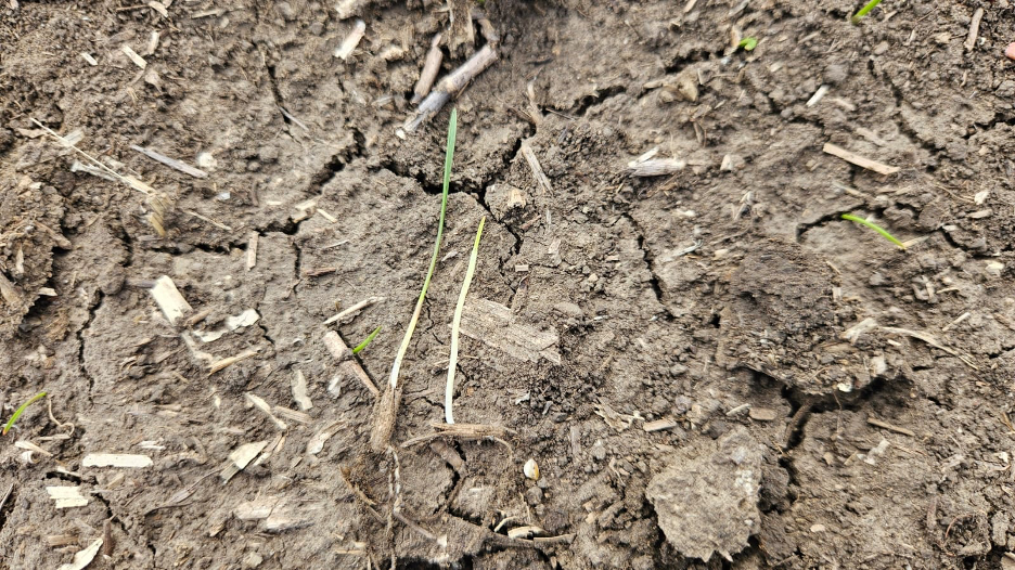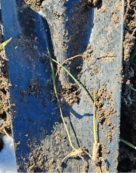 Рисунок 4 и 5. Всходы эгилопса ВВСН 10-11 (шило – первый лист)